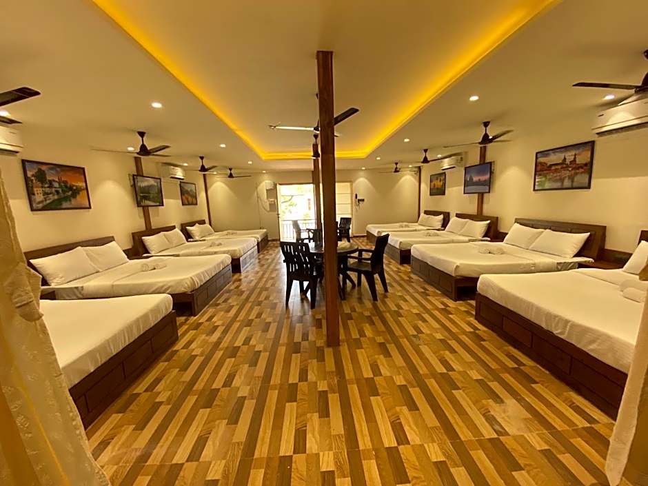 This air-conditioned dormitory room has a private bathroom, a tea and coffee maker, a wardrobe as well as a balcony. The unit has 4 beds.